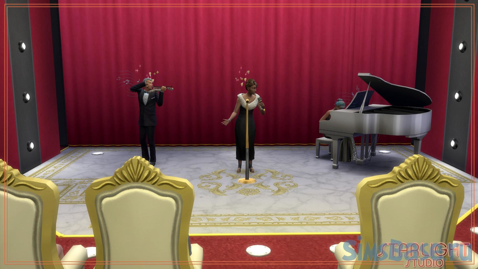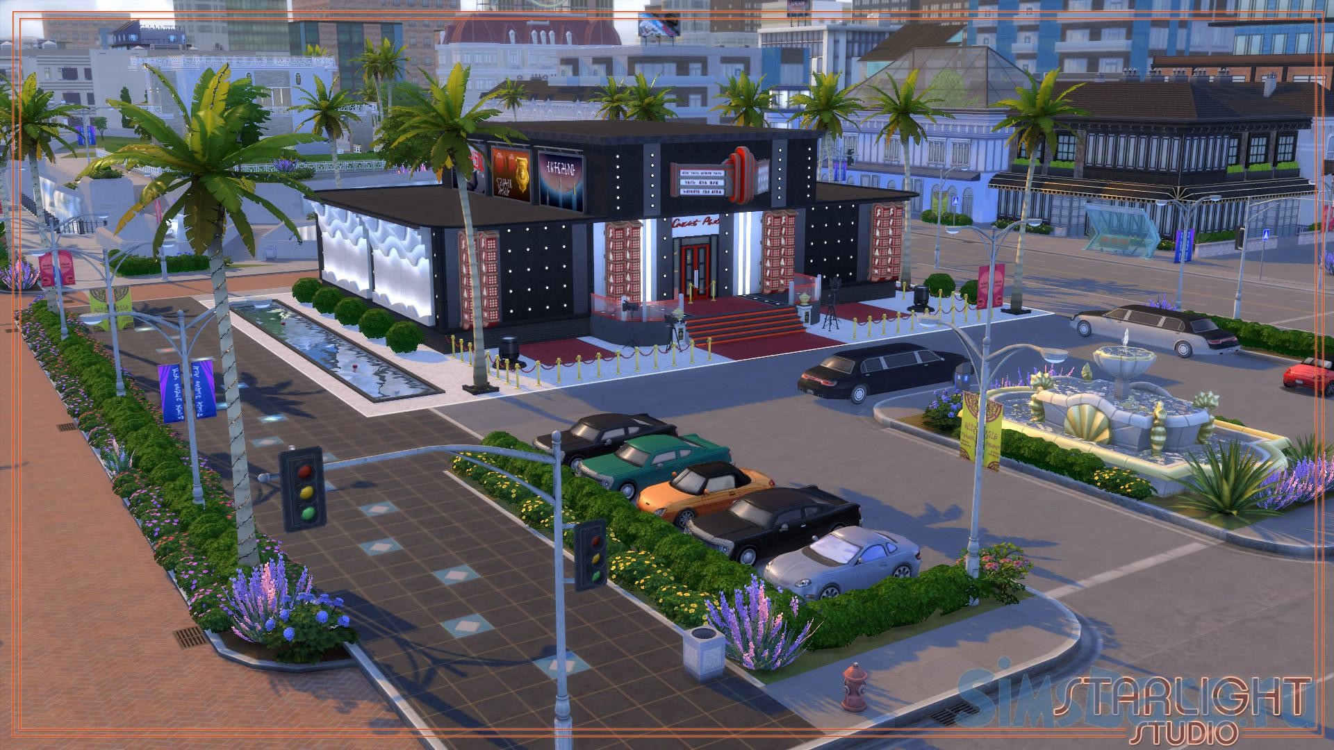 Вариация ночного клуба Старлайт, где симы могут посетить вручение наград, провести время приятно и отдохнуть. Это идеальный вариант для ваших звездных симов: коктейль-бар-театр. Для посещения требуется Известность 5 звезд. Вы также можете подготовиться в раздевалке перед тем, как дать джазовый концерт. Наконец, посмотрите свои собственные фильмы в комфортабельном кинотеатре.