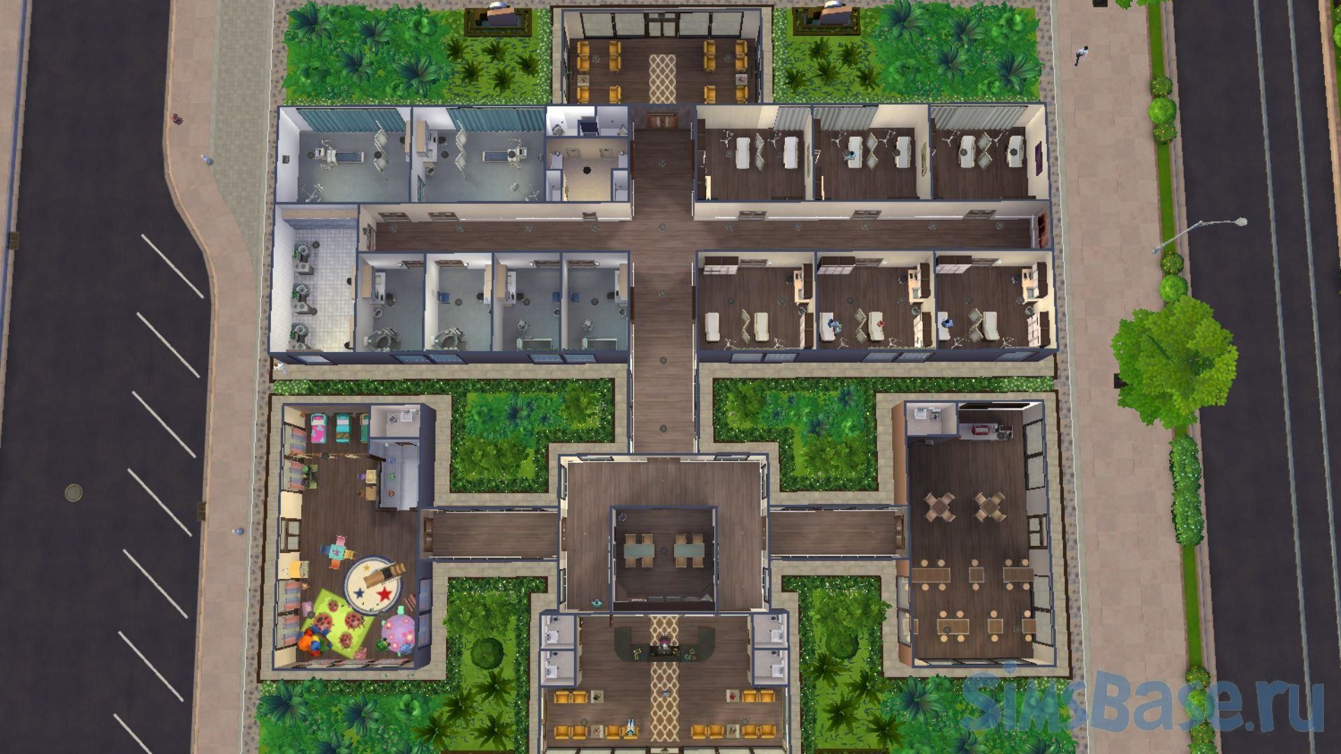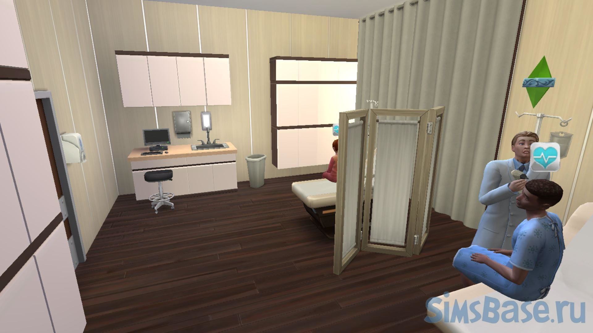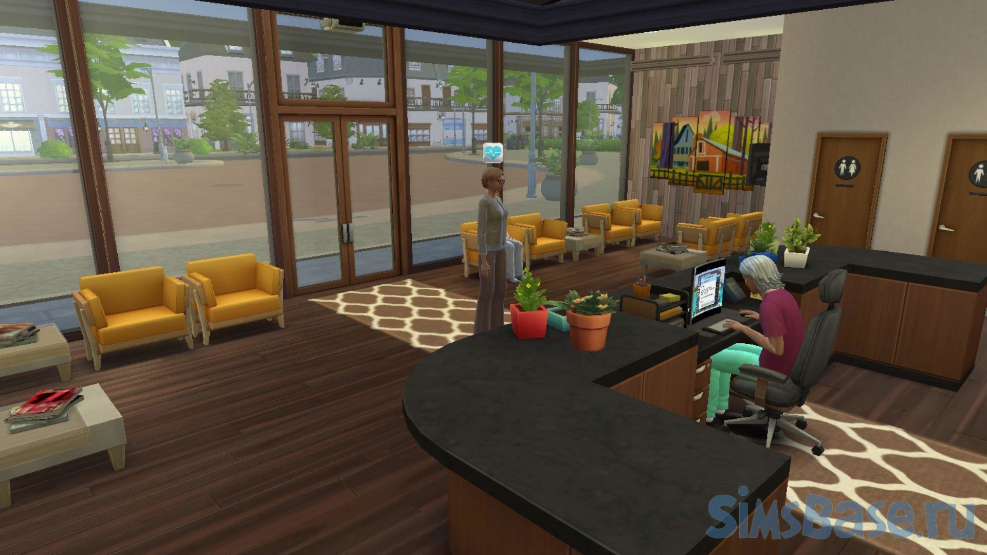Светлое, просторное и гостеприимное место для приема и лечения больных. Есть небольшой кафетерий, детская зона. Отличная замена дефолтной больницы, особенно для карьеры Доктор.