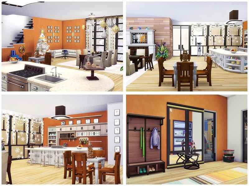 Планировка: три спальни, три ванных комнаты, просторная гостиная с камином и елкой, столовая с барной стойкой и кухня.