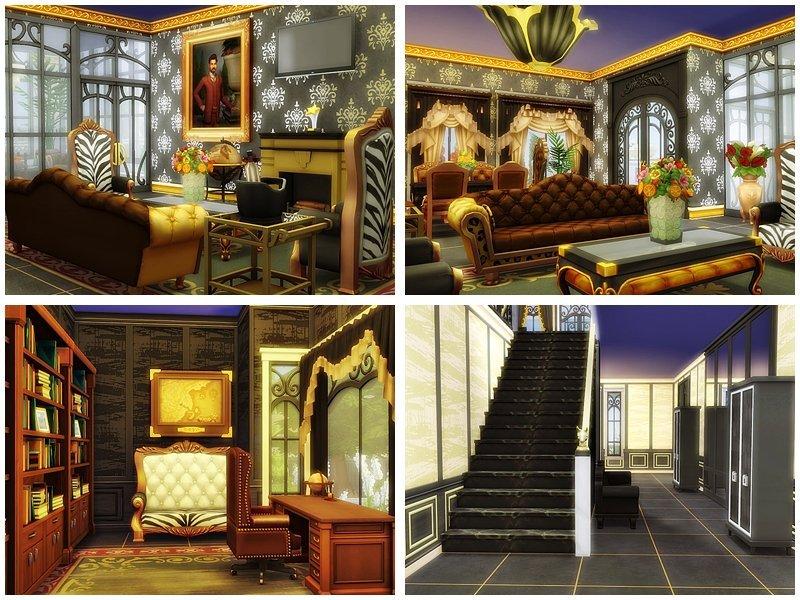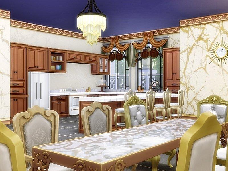 Есть вкратце – это очень большой особняк, наводненный предметами роскоши любых размеров и направлений. Планировка позволяет заселять очень большой семье симов с несколькими детишками.