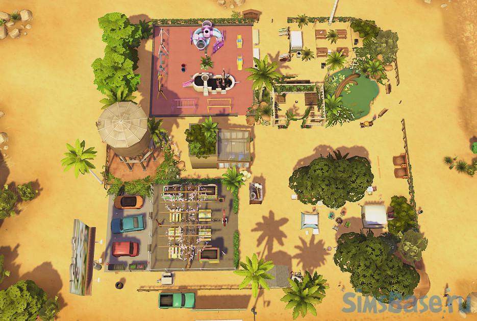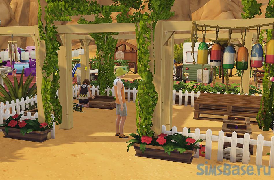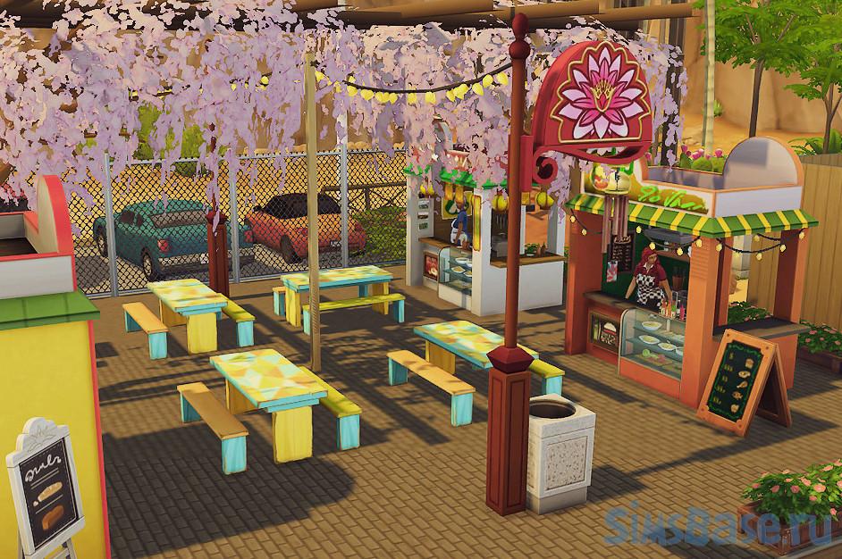 В парке есть фуд-корт с киосками, небольшой спа-центр с ковриками для йоги/массажным креслом и столом, сауной наверху, игровая площадка для самых маленьких, место для пикника со столиками и фургоном с едой, пруд рядом с небольшим общественным садом (с коровьим растением, поэтому автор также использовал рекламный щит с коровьим растением) и место для палаток! В этом парке любой сим найдет чем заняться.