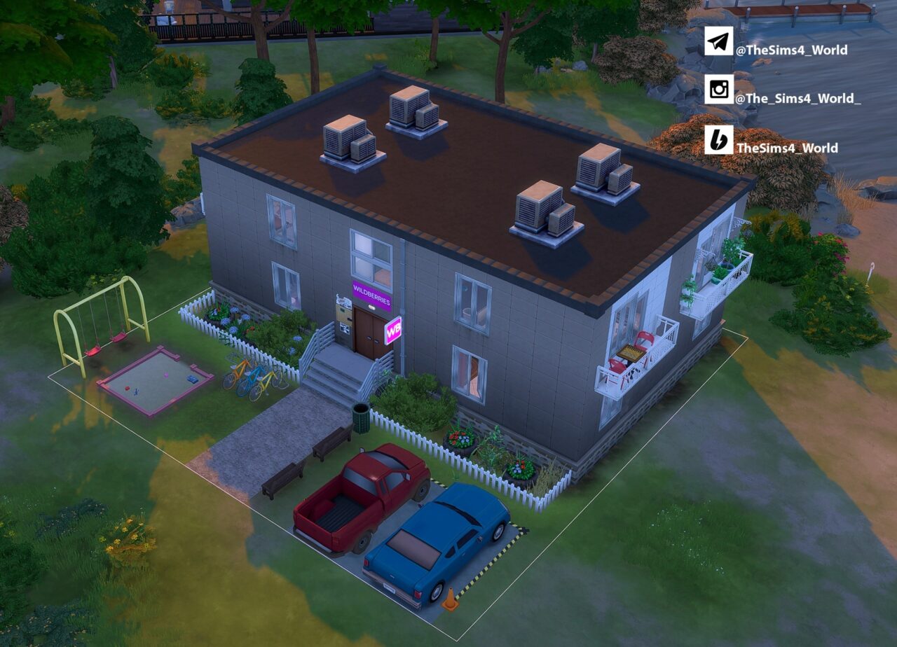 Это тот самый панельный домик, который стоит в каждом спальном районе: облупившаяся когда-то бежевая краска, балкончики с спутниковыми тарелками, козырьки над подъездами и… яркая вывеска ПВЗ Wildberries вместо бывшего продуктового! Теперь ваши симы могут жить прямо над своими посылками — получать заказы, не выходя из подъезда