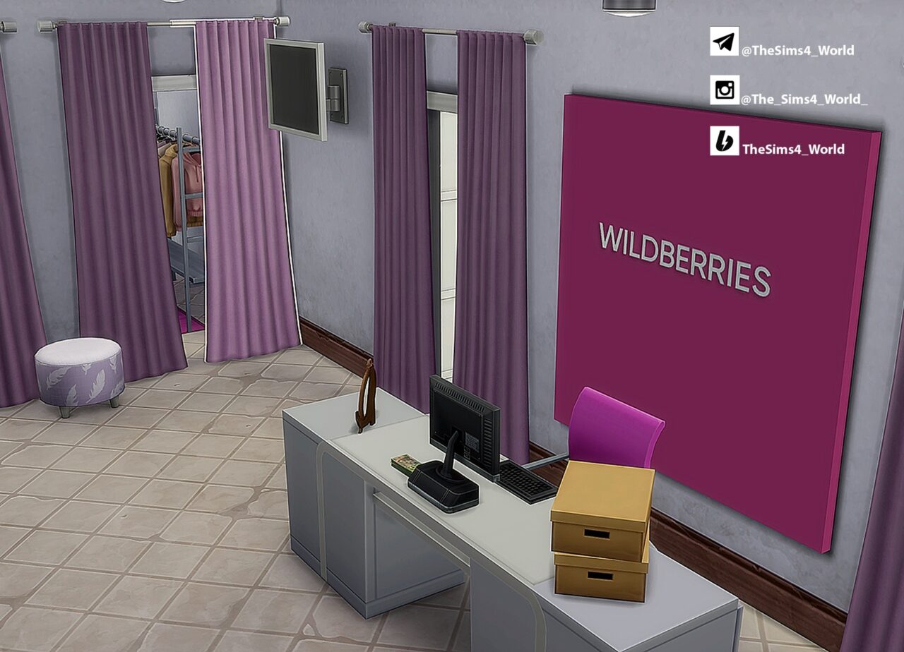 Лот 20×20, полностью жилой (квартиры обставлены минимально, чтобы вы могли доделать под своих симов), первый этаж — рабочий ПВЗ с примерочными, зоной выдачи, стеллажами и даже комнатой для персонала. Всё максимально реалистично: реклама на фасаде, баннеры, пакеты, коробки — как в жизни!
