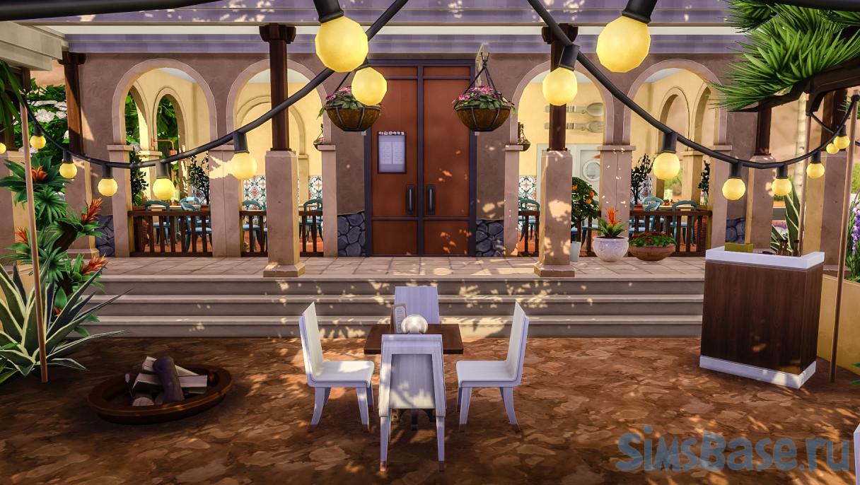 Ресторан создан для теплых регионов. Среди обилия деревьев и кустов, находится здание с крытой верандой. На веранде есть столики для отдыха, внутри же тоже столики и возможность сделать заказ. Также присутствует обилие фонарей, костер для любителей шашлыка, открытые окна и яркий декор интерьера – здесь приятно встретиться и провести время, перекусить или провести свидание.