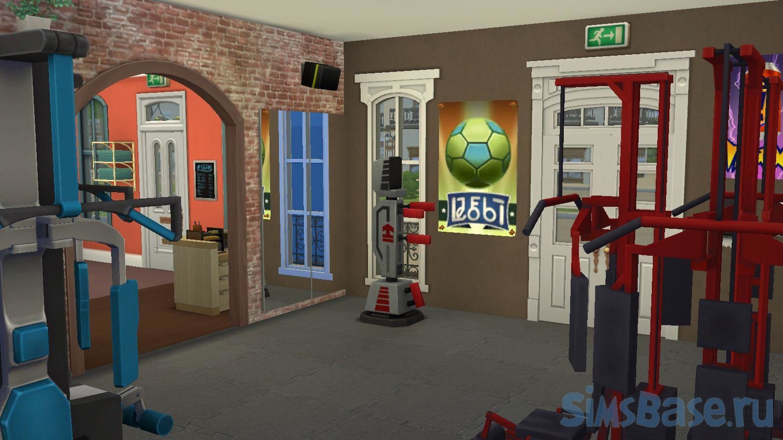 Созданный под вдохновением от архитектуры французских кварталов, спортивный центр представляет собой два здания, объединённых внутри. На первом уровне находится тренажерный зал и беговые дорожки, а на втором уровне тренажеры, раздевалки и мини-спа. Это идеальное место для ваших симов, чтобы потренироваться, поиграть в баскетбол и, возможно, пойти на массаж после тренировки.