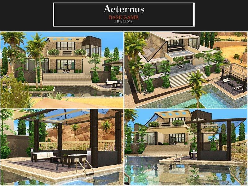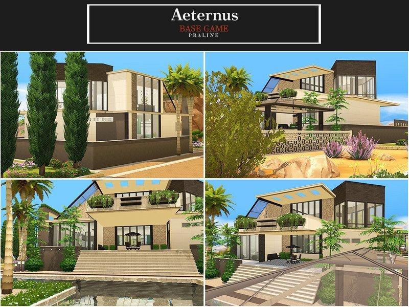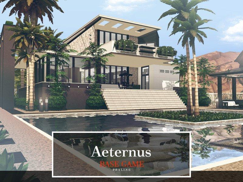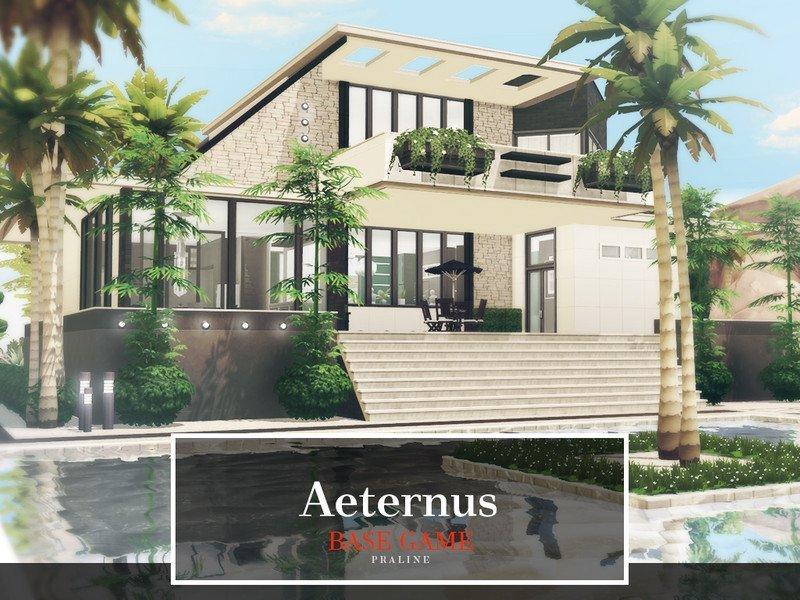 Восхитительная тропическая вилла на два этажа с огромным бассейном перед центральным входом. С улица довольно густо украшена пальмами, бамбуком и прочей тропической зеленью. Для небольшой семьи симов.