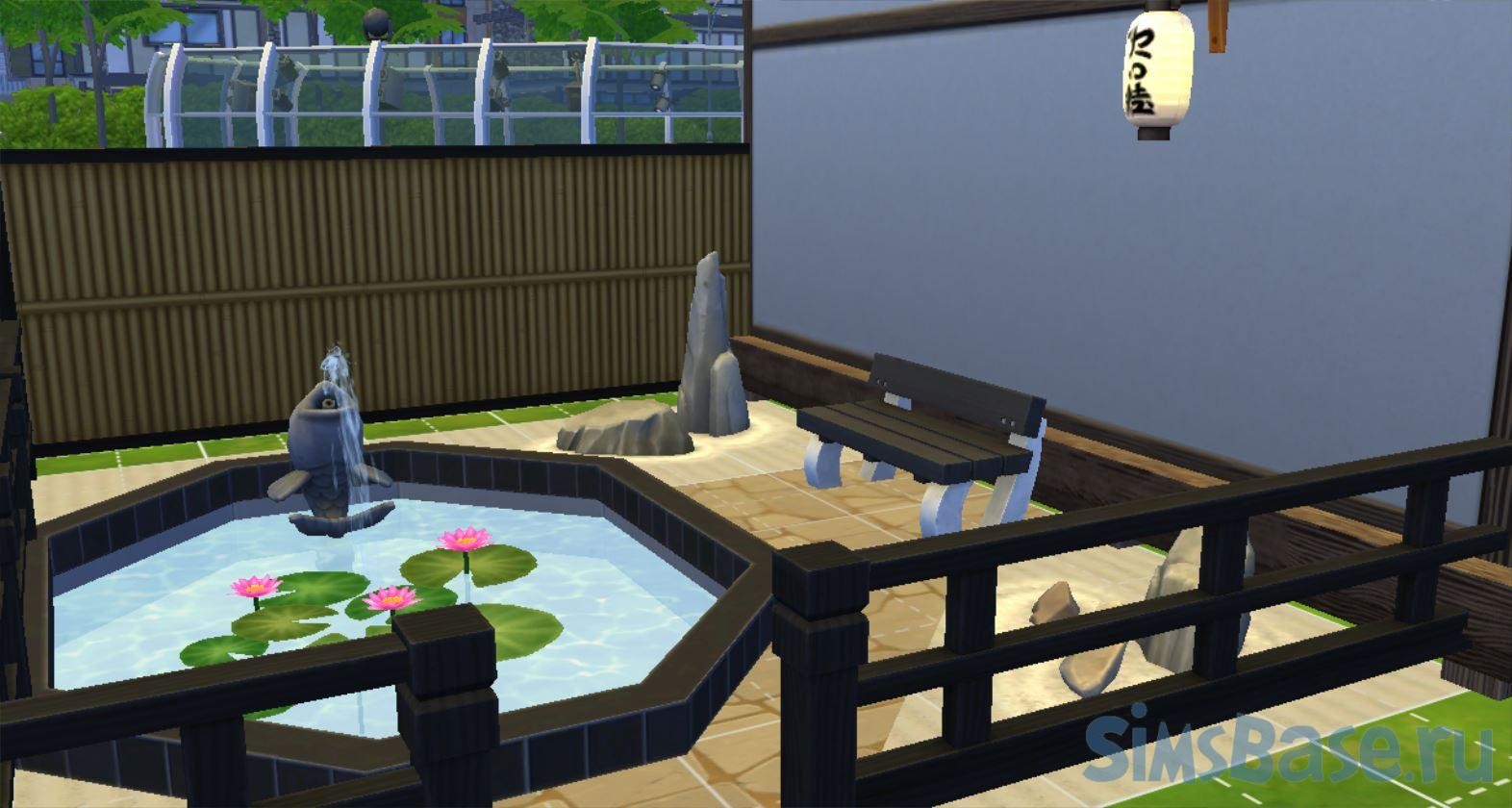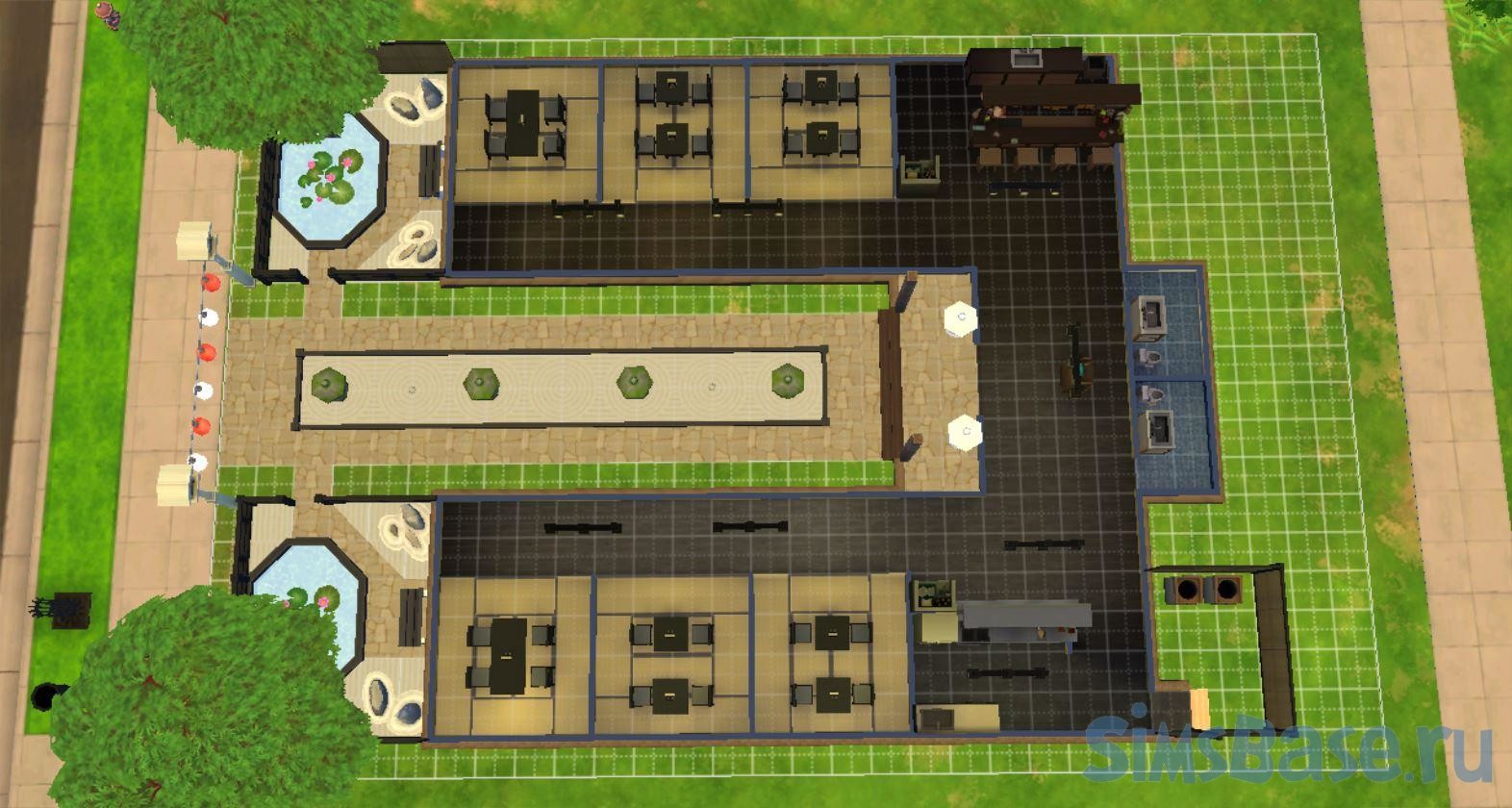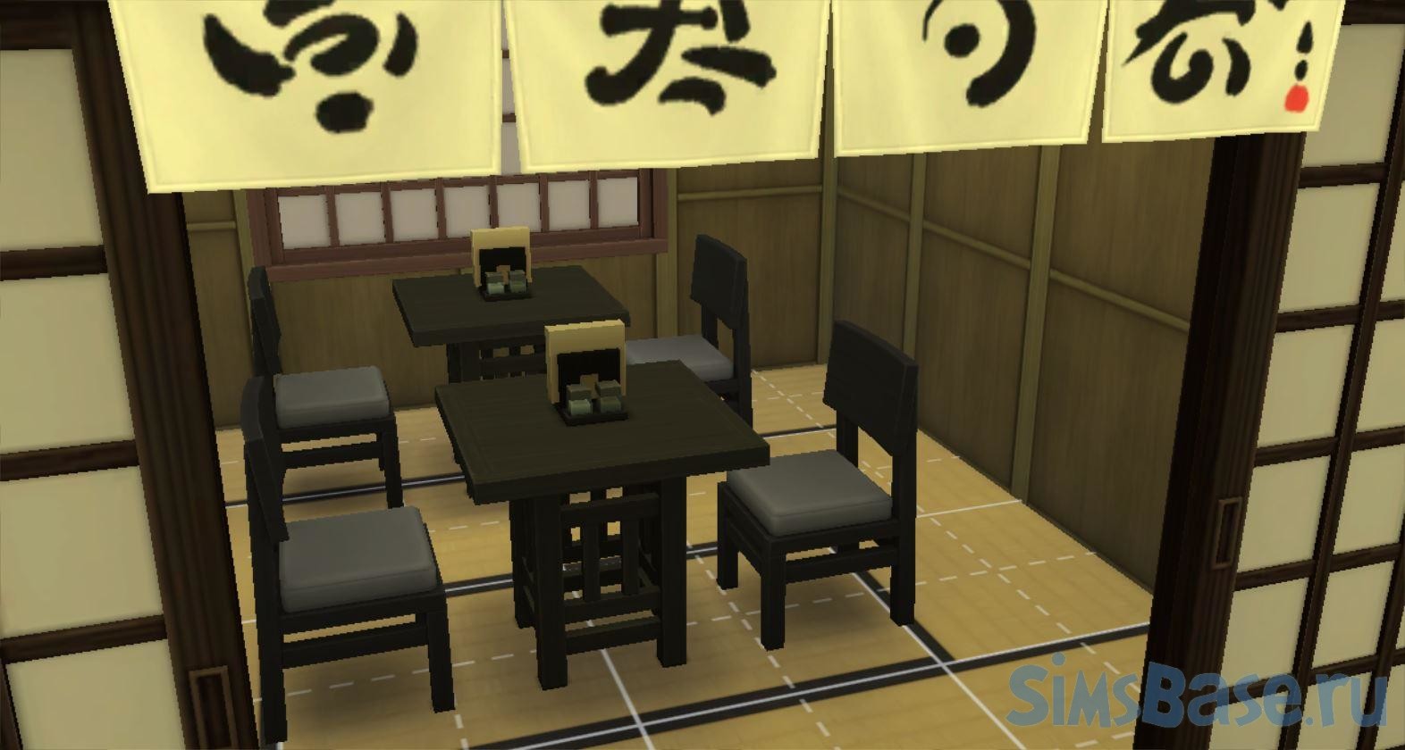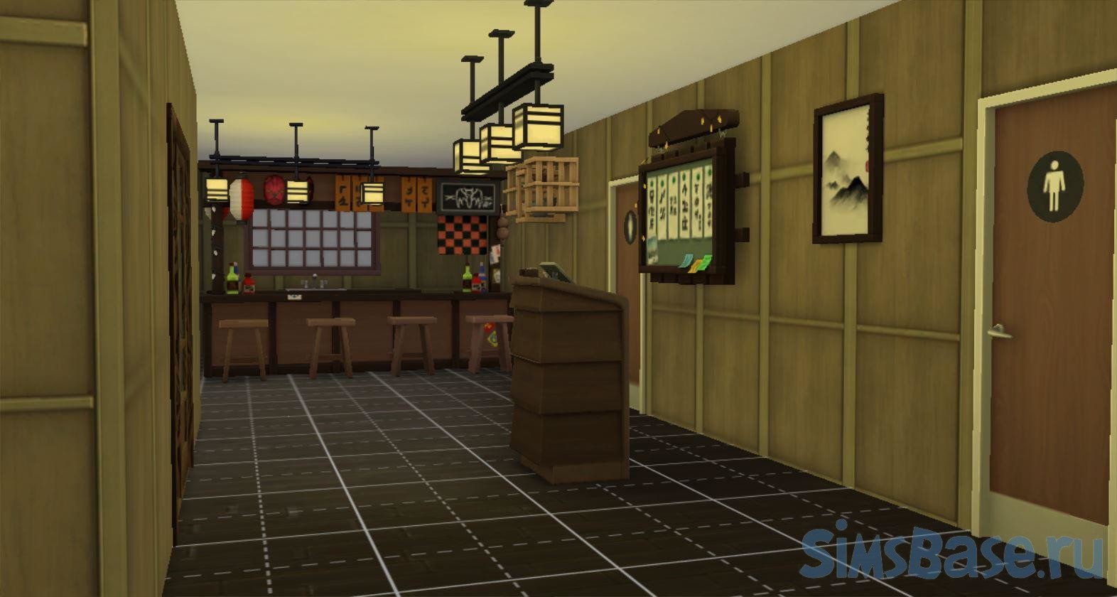 Две небольшие зоны отдыха с фонтанами под японскими кленами обрамляют вход в ресторан. А наверху весело висят фонари, ведущие на улицу. Вверху по центральной дорожке находится своего рода дзен-сад с каменными фонарями, освещающими путь, маленькими фонтанами, встроенными в песок, весело выплескивающими воду к небу. Но что делает этот ресторан уникальным, так это небольшие альковы, в которых можно разместить либо два сдвоенных стола на четверых, либо один большой стол на четверых. Подвесные флаги украшают открытые арочные проемы сёдзи, чтобы вы могли поужинать в уединении. Персонал одет в традиционную японскую одежду. И нет, вам не нужно снимать обувь при входе, потому что это не гигиенично (даже в игре, просто фу.) Меню также традиционно (или почти все) традиционно японское, в основном суши, рамен и онигири.
