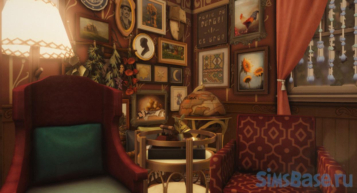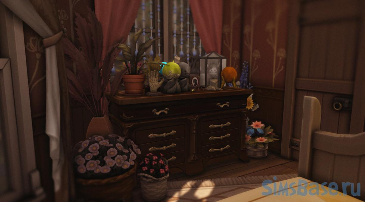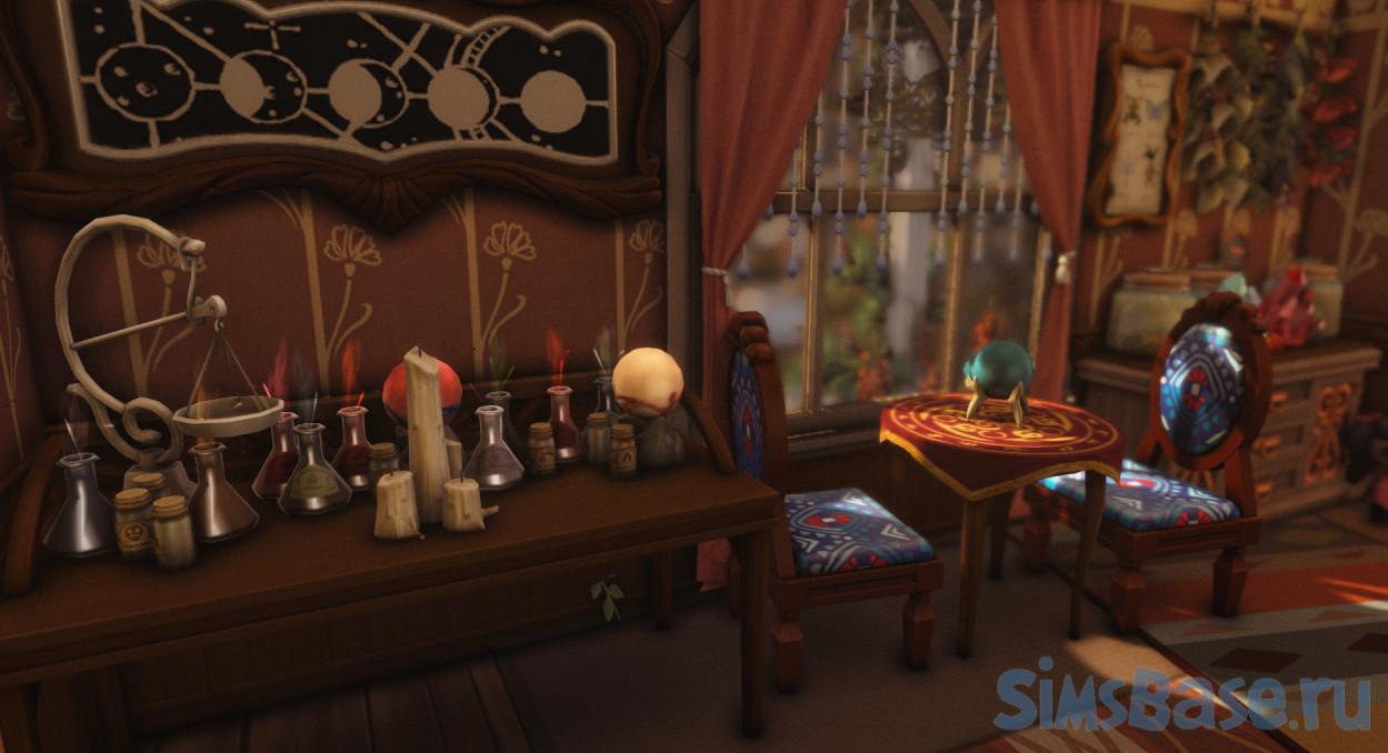 Небольшой дом, в котором может поселиться целитель или лекарь. Имеется одна спальня и две ванные комнаты, большой сад, множество декора, как во дворе, так и в самом здании. Внутри есть комнаты для магии, множественные колбочки, скляночки, сушеные травки, библиотека и прочее. Декора очень много и разного, при желании который можно частично удалить для ускорения загрузки участка.