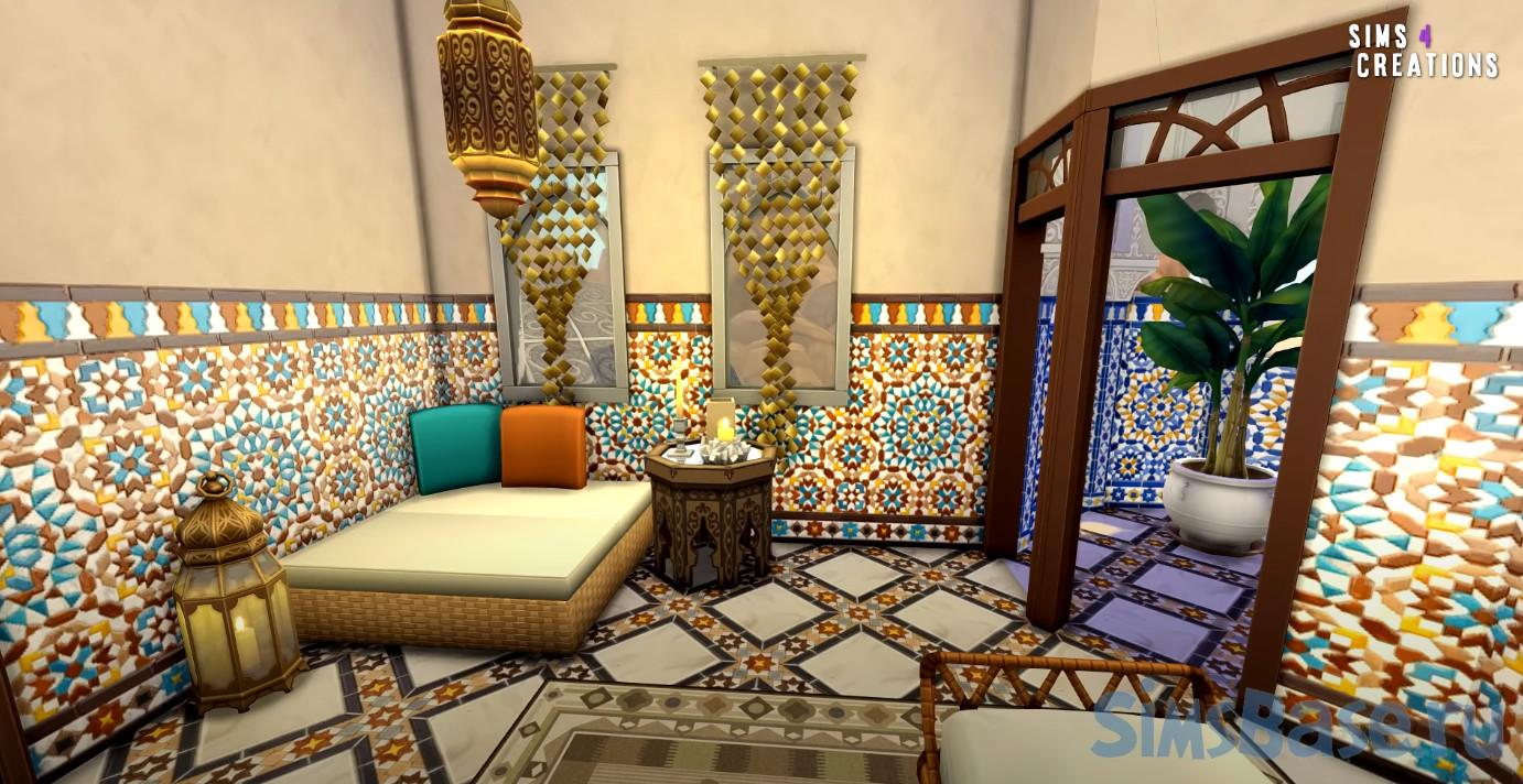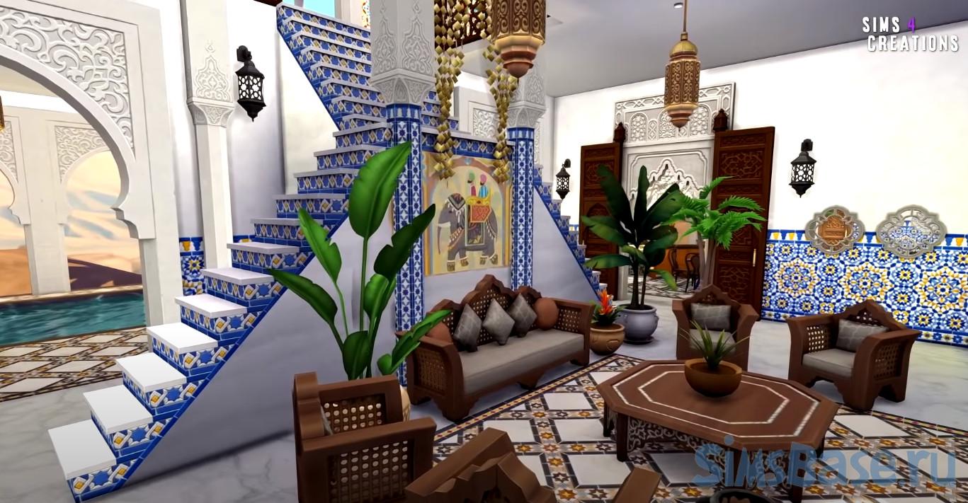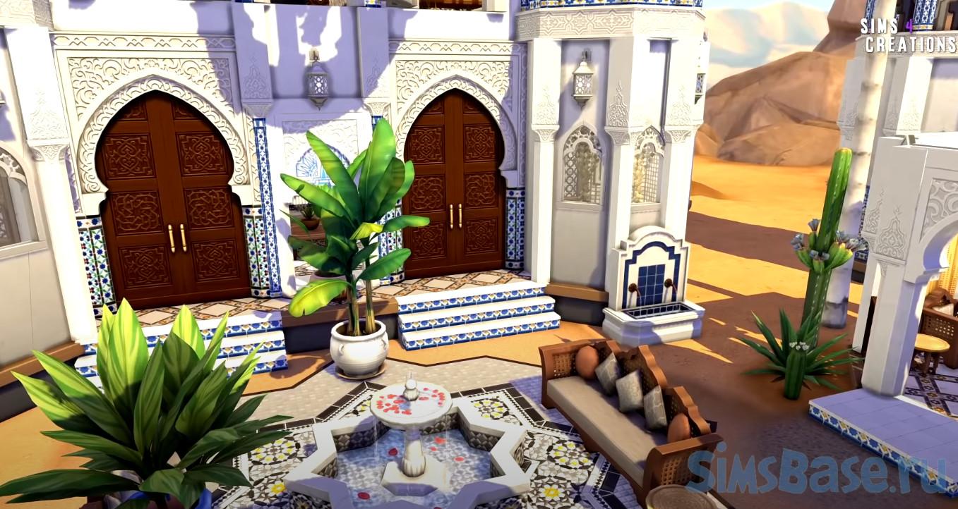 Этот жилой дом построен в характерном архитектурном стиле стран Ближнего Востока, и используются многие предметы из расширения Личный оазис. Данный дом большой, рассчитан на многочисленную семью, имеет бассейн, отдельные беседки и пристройки. Подробнее можно посмотреть на видео Speed Build, в конце которого представлены общие ракурсы здания.
