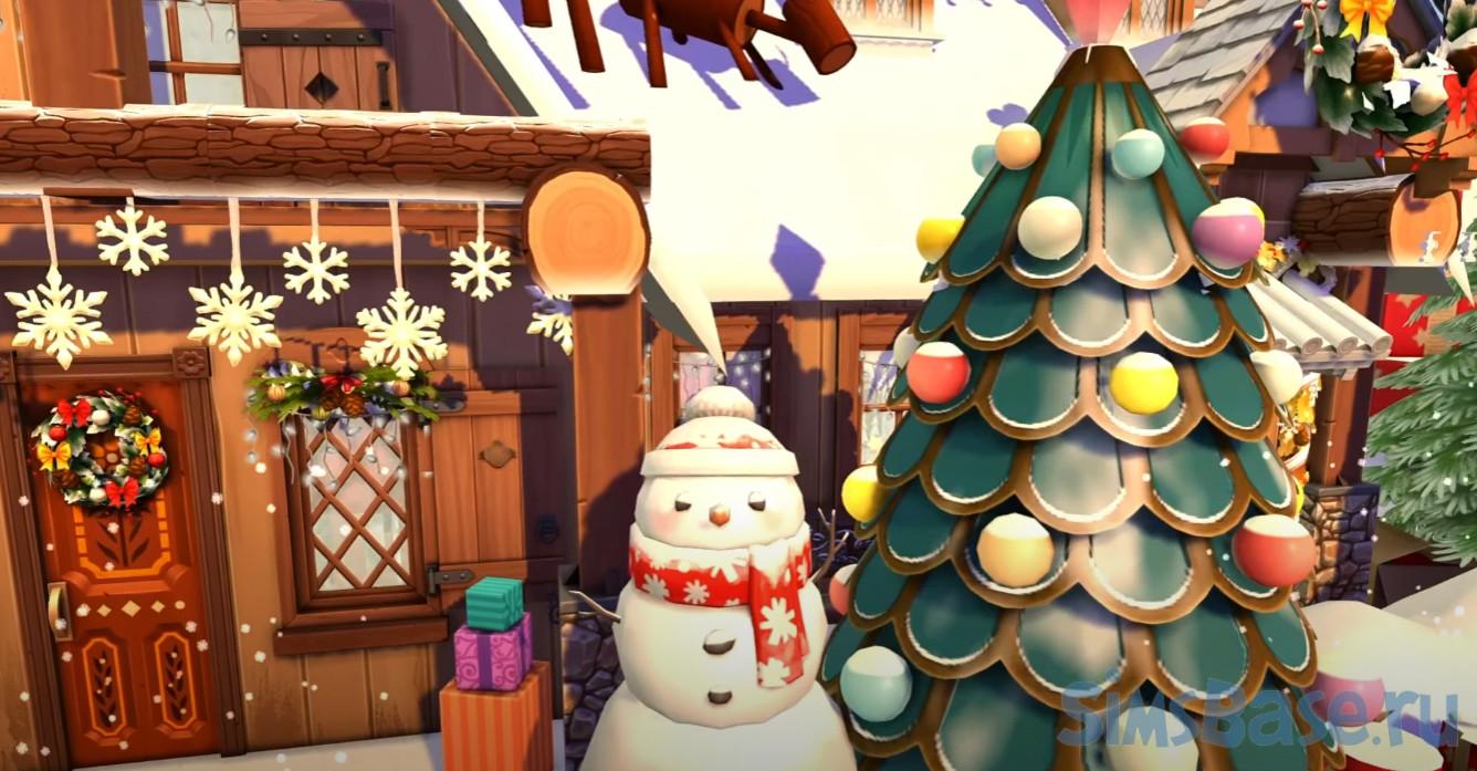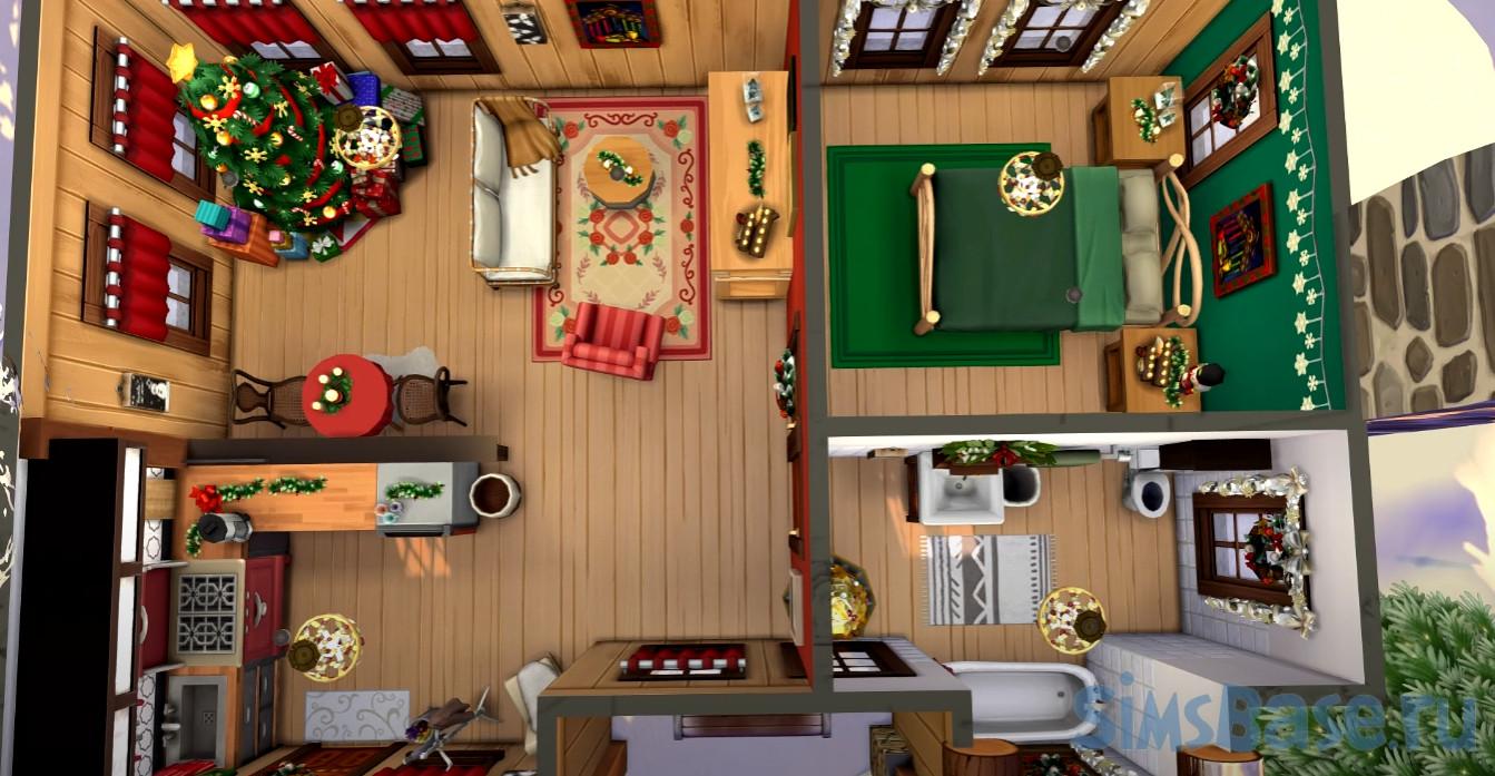 Небольшой сказочный домик, украшенный к новогодним праздникам, подходит для одного сима или небольшой семьи. Одноэтажный, на платформе, с небольшим по количеству украшением вокруг – создается впечатление, что это действительно снежный шар, который достаточно перевернуть и вокруг засветятся снежинки. В доме одна спальня с большой кроватью, ванная столовая, гостиная. Много декора, украшений и мебели.