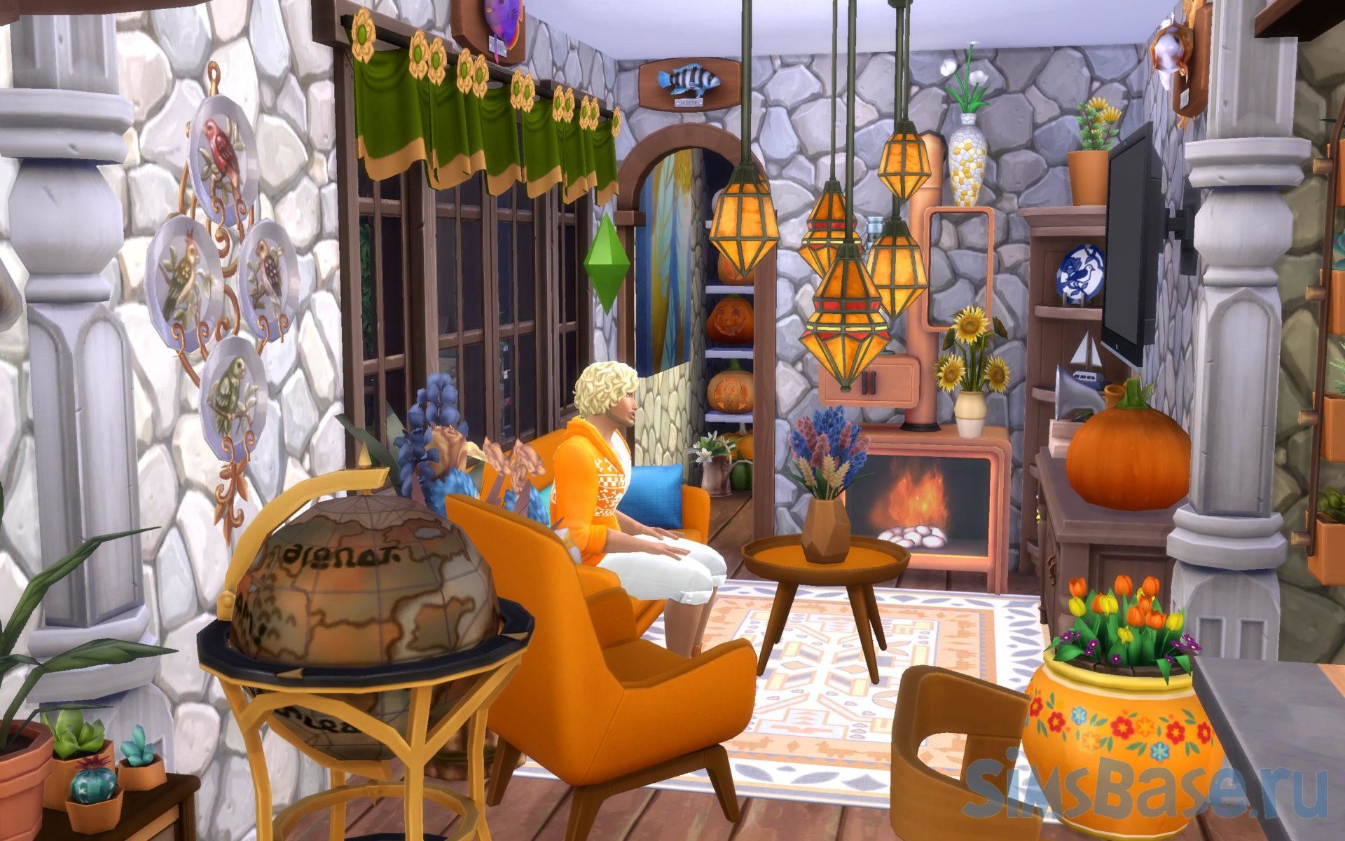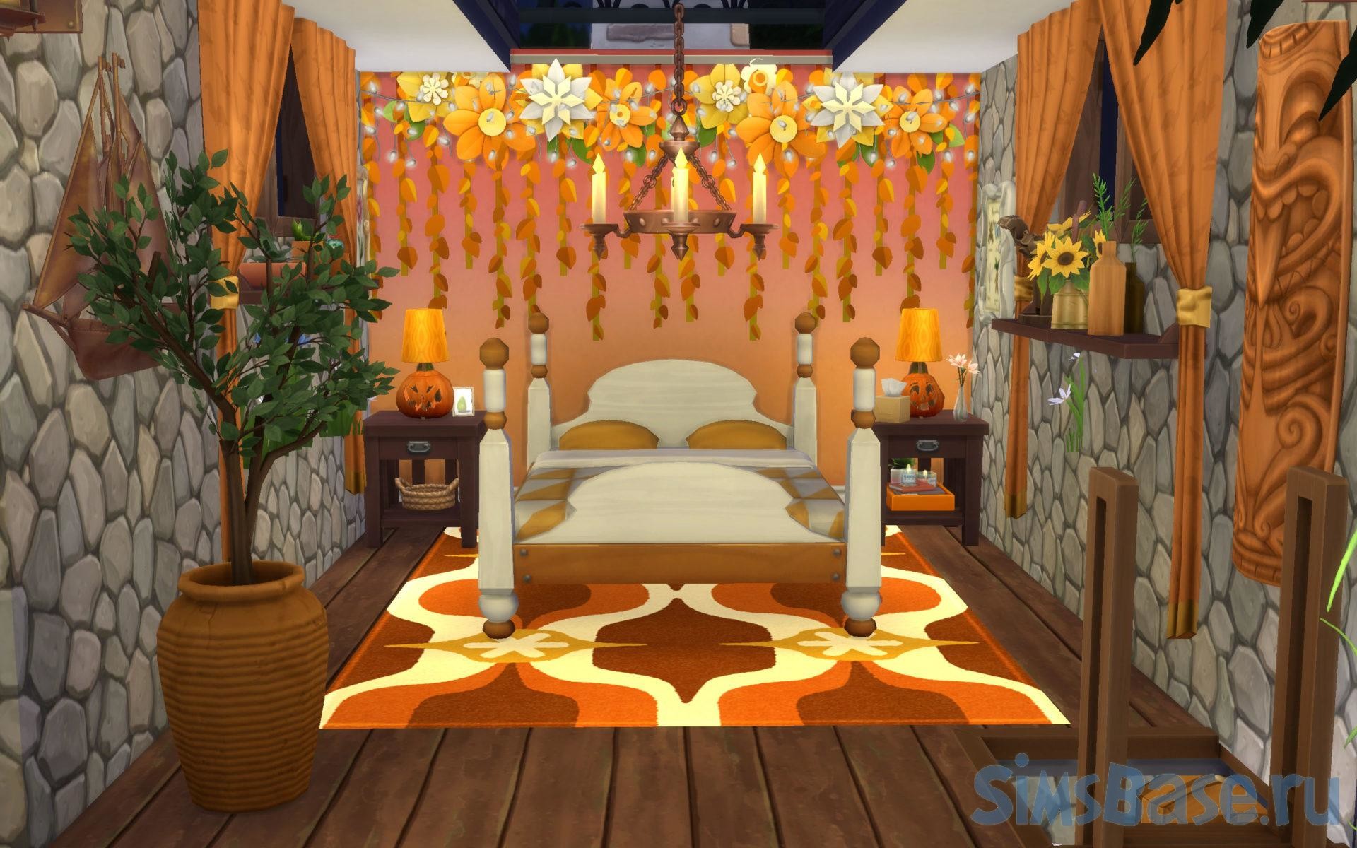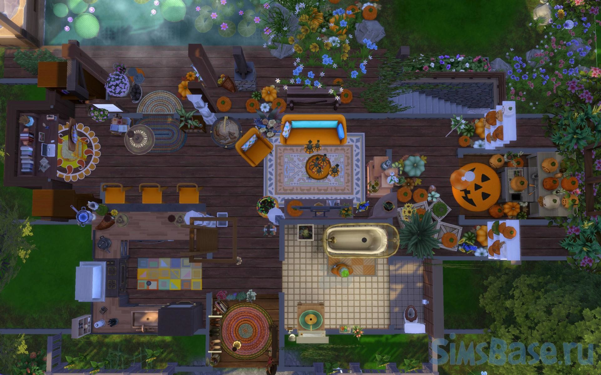 Этот причудливый коттедж – идеальное место для осеннего сезона и поклонников резьбы по тыкве. Первый этаж: кухня, ванная комната и лестница, ведущая наверх. Второй этаж: спальня с выходом на террасу с ковриком для йоги и лежаком. Подвал: прачечная и тренажерный зал. Задний двор: бассейн в виде пруда, площадка для барбекю, обеденный стол и джакузи.